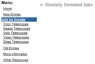 Penayang tidak boleh menerapkan iklan Google dengan cara yang menyamarkan iklan itu. Ini mencakup pemformatan konten yang berdekatan agar menyerupai iklan. Jika penayang menempatkan iklan pada laman hasil penelusuran selain Googles, harus ada perbedaan yang jelas antara hasil penelusuran dan iklan.| Pada contoh, tautan di atas dan di bawah unit iklan diformat sama dengan iklan, sehingga sulit membedakannya. Karena itu, penerapan ini tidak mematuhi kebijakan program kami. |